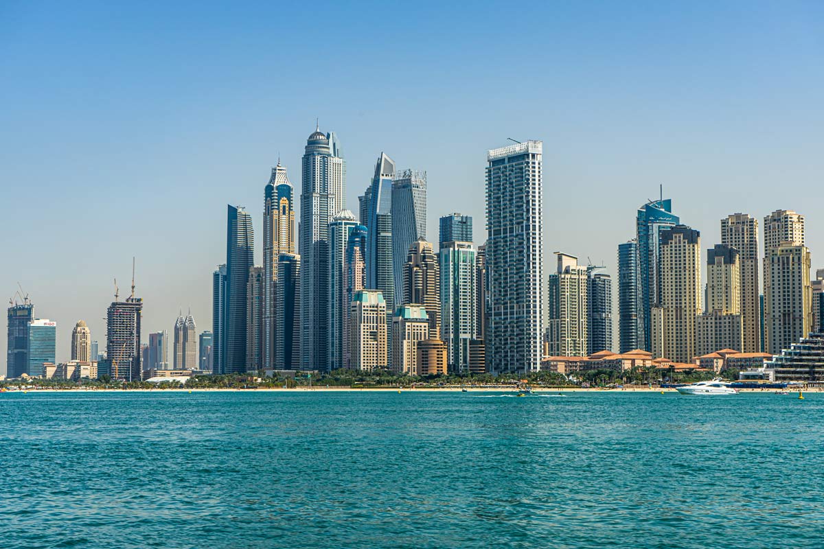 Dubai Marina skyline, seen from The Crescent at The Palm Jumeirah